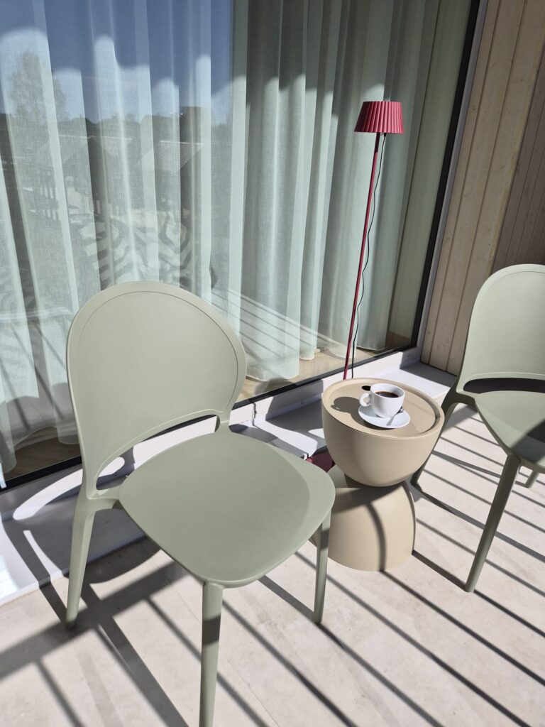 Viesistabu saglabājam gaisīgu un vieglu, nepārblīvētu. Lai caru telpu plūst gaiss un gaisma. Šeit izvelēta neitrāla toņu gamma ar nelieliem krāsu akcentiem mazajās mēbelēs un dekoros. Apgaismojums izvelēts neitrālos toņos lina audumā, ar melnām detaļām, papildinot kopksatu ar svaigu ,olīvzaļu stāvlampu akcentam. Gaismekļi ir no mūsu ražotnes un virs galda iekārtais gaismeklis tapis pēc mūsu skices. Izvēlētie materiāli apgaismojumam un dīvānam sasaucās ar gaisīgajiem aizkariem, kas ļauj telpā ienākt gaismai. Iekārtots arī balkons, kur nesteidzīgi malkot kafiju brīvdienu rītos.