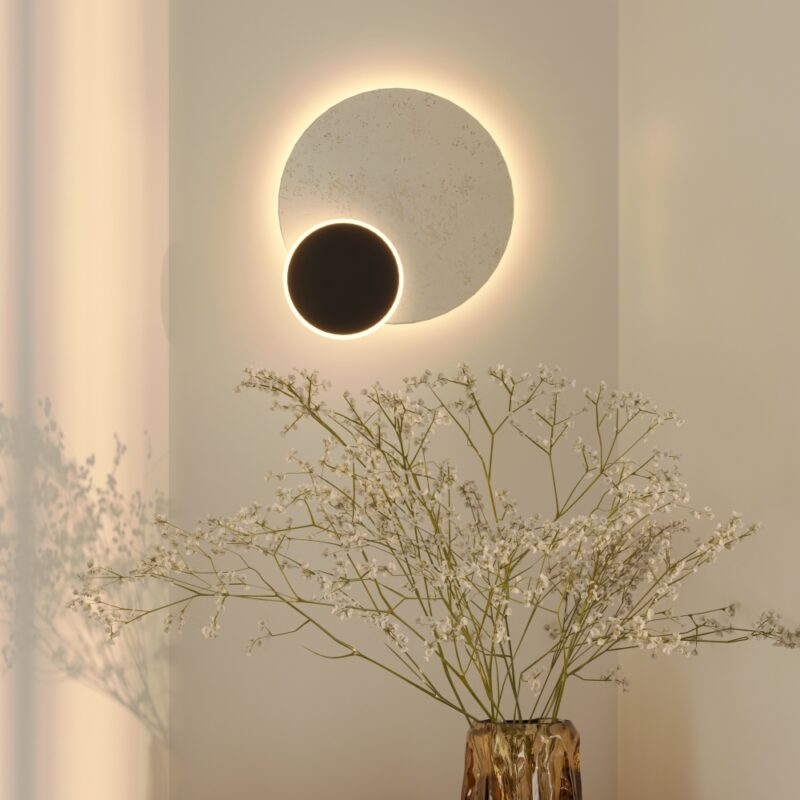 Aktuāla dizaina dekoratīvs sienas gaismeklis no dabīgā travertīna. Travertīnam ir unikāla tekstūra un patīkams bēšs tonis. led gaisma to izgaismojot skaisti izceļ, radot elegantu noskaņas apgaismojumu.  Kombinācijā ar melno metāla akcentu, gaismekļa dizains kļūst par mūsdienīgu un uzmanību saistošu interjera elementu.
