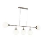 Šis mākslinieciskais apgaismojuma objekts rosina iztēli: tonētie stikla abažūri kā lielas molekulas plūst ap grafisko rāmi, un katrs skatītājs šajā neparastajā lampā saskatīs kaut ko unikālu.