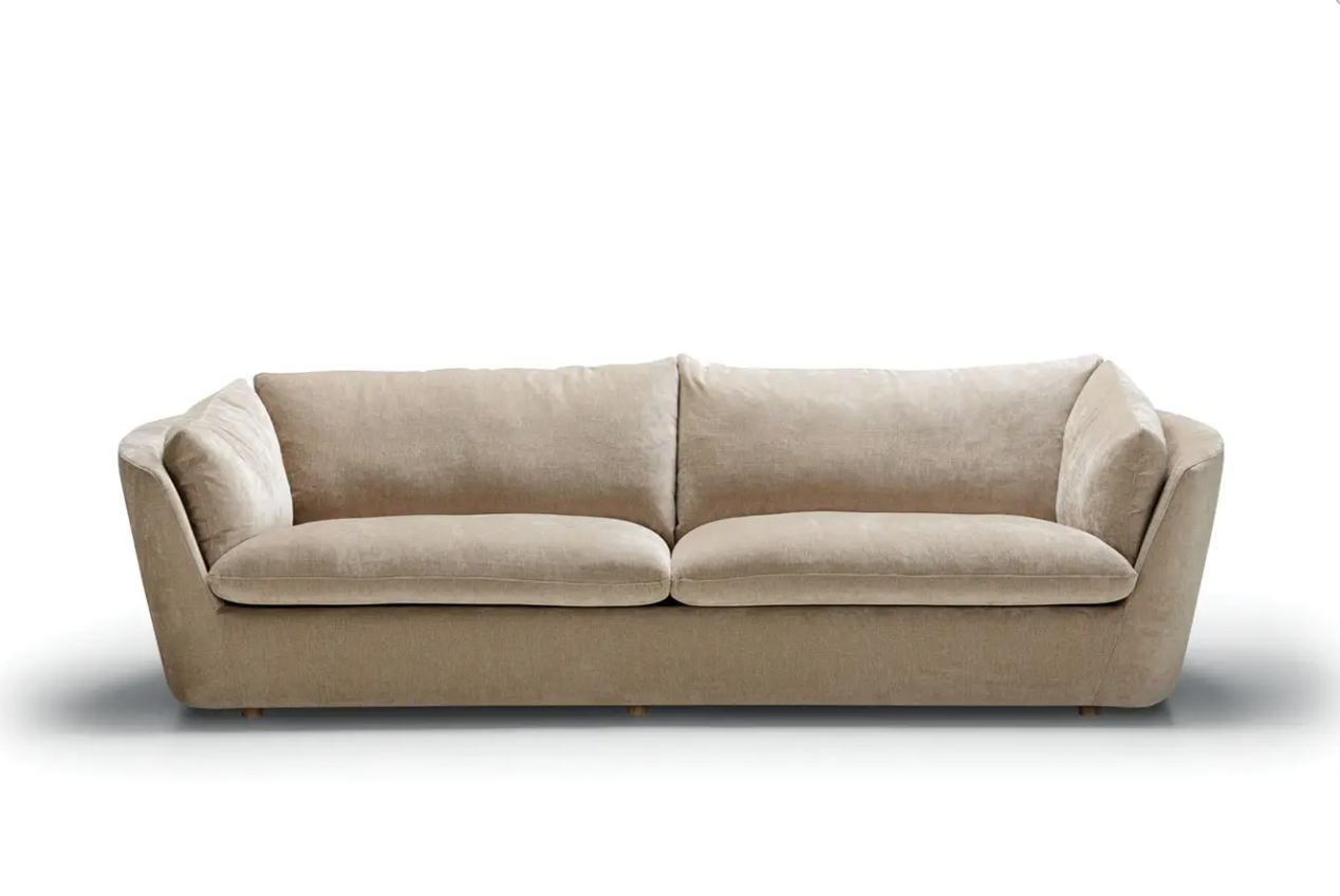 Elegants un mīksts dīvāns, maigā bēšā audumā, kas ir patīkams taustei. Tam ir noapaļotas malas, kas dizainu padara aktuālu. Šis modelis iederēsies kā klasiskos, tā modernos interjeros, padarot to par nekļūdainu izvēli tiem kas augstu vērtē gan komfortu, gan dizainu.