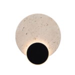 Elegants ēdamgalds un izteiksmīgas valrieksta toņa kājas, ar apaļu virsu, kas ir matēta baltā marmora rakstā ar pelēku dzīslojumu. Virsma ir īpaši noturīga pret skrapējumiem.