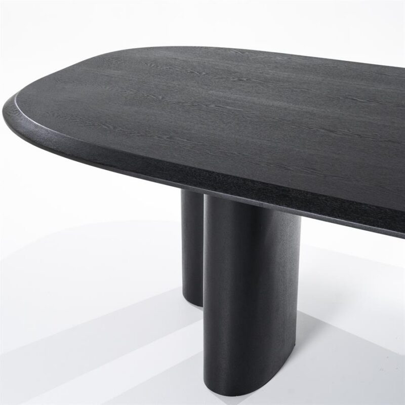 Unikāla dizaina ēdamgalds melnā lakota finierī. Interesants trīs kāju dizains, ar neregulāras formas virsmu. Izteiksmīgs dizaina akcents, kas izcelsies jūsu ēdamistabā un radīs tajā īpašu auru.